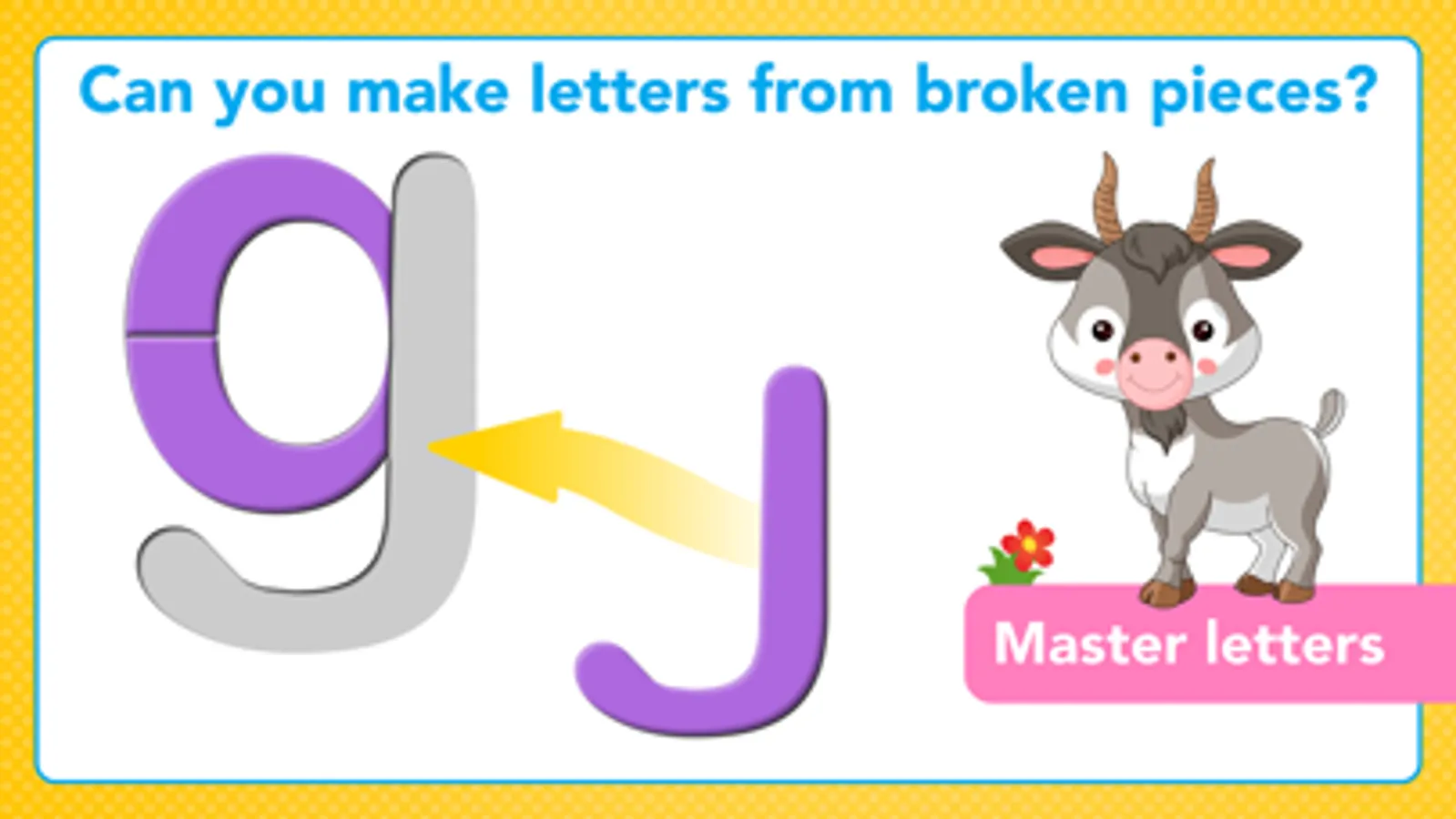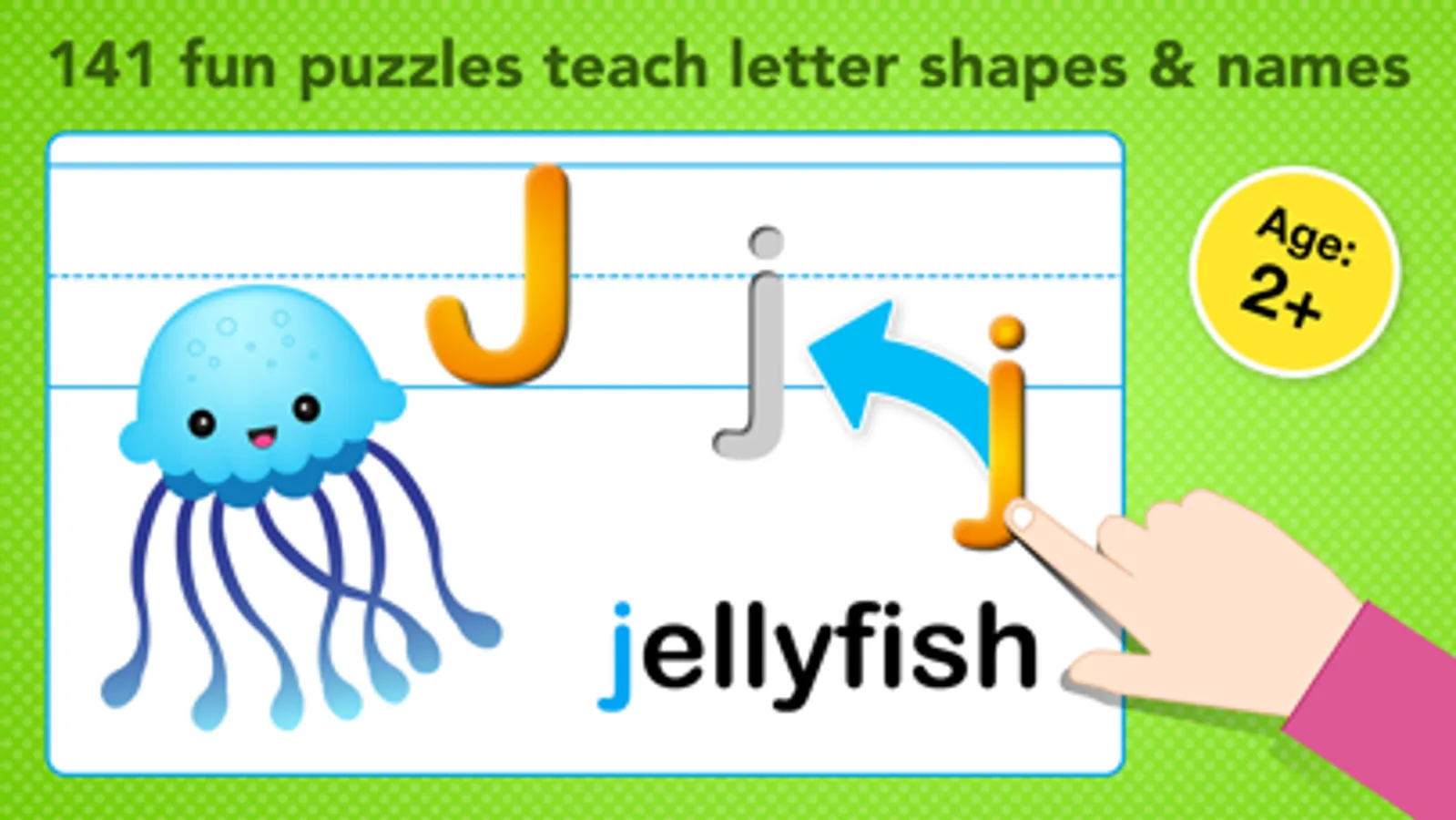 Learning ABCs has never been simpler! In this fun educational puzzle game, toddlers and preschoolers learn to recognize letter names, build familiarity with shapes of uppercase and lowercase letters, associate each letter with a variety of objects whose name begins with that letter, and spell basic words. By acquiring familiarity with letter names and shapes in this way, children develop a solid foundation for success on their early reading journey.