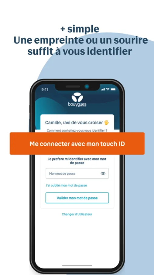 Client fixe, mobile, ou les deux ? Avec la nouvelle application Bouygues Telecom, vous pouvez vous identifier rapidement par reconnaissance faciale ou empreinte digitale.