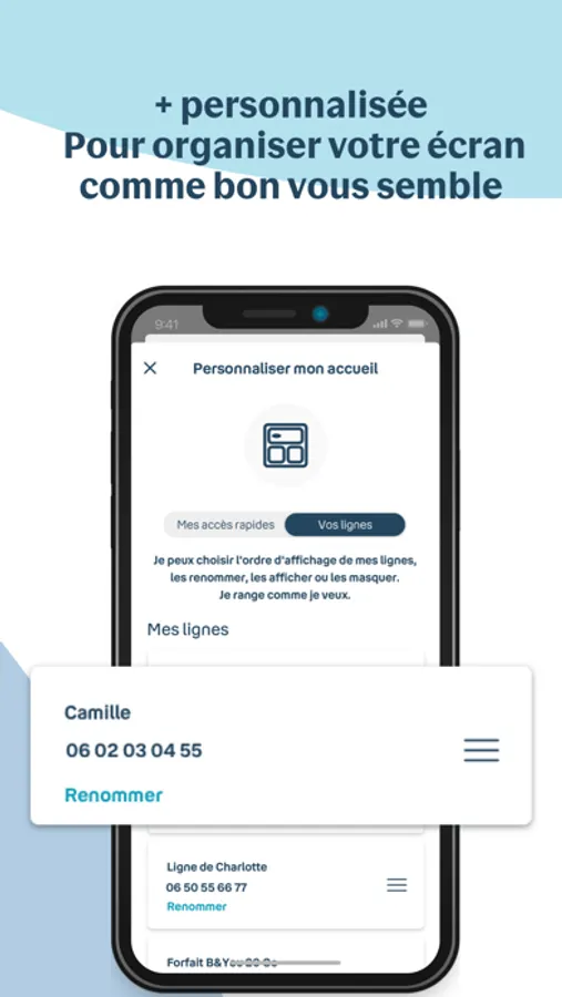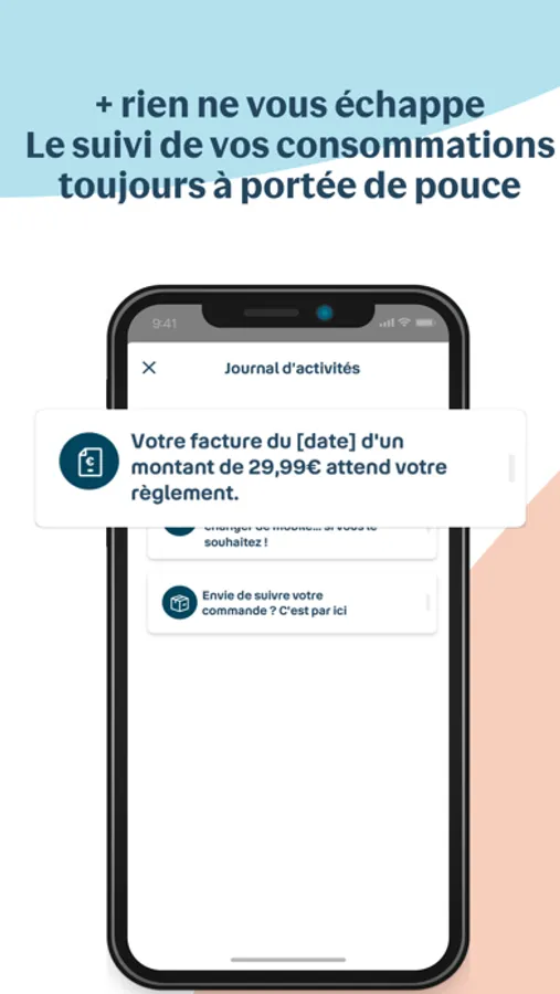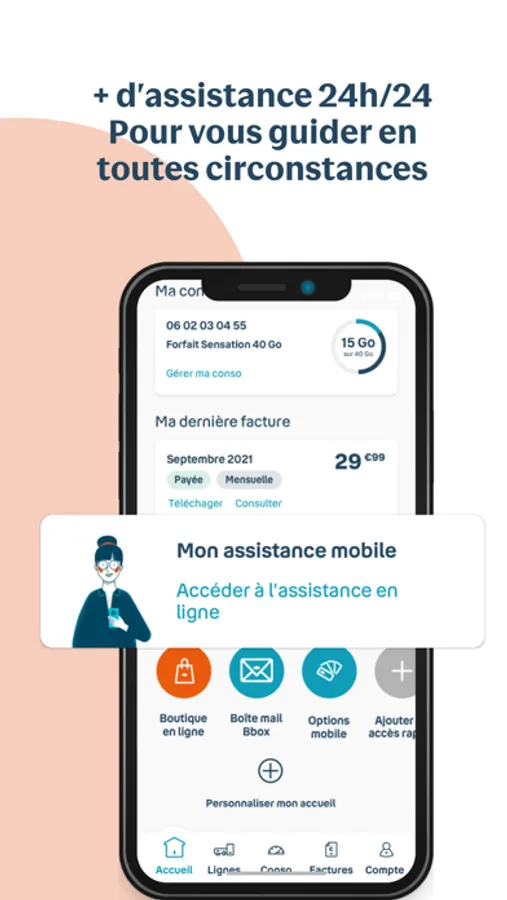 Consommation, factures, forfaits et abonnements… Toutes vos informations essentielles sont visibles en un clin d’œil, et accessibles en un clic sur votre écran d’accueil personnalisable.