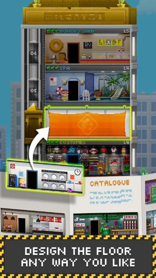 - Play as a building tycoon and oversee the construction of numerous unique floors, each reflecting your creativity and style.