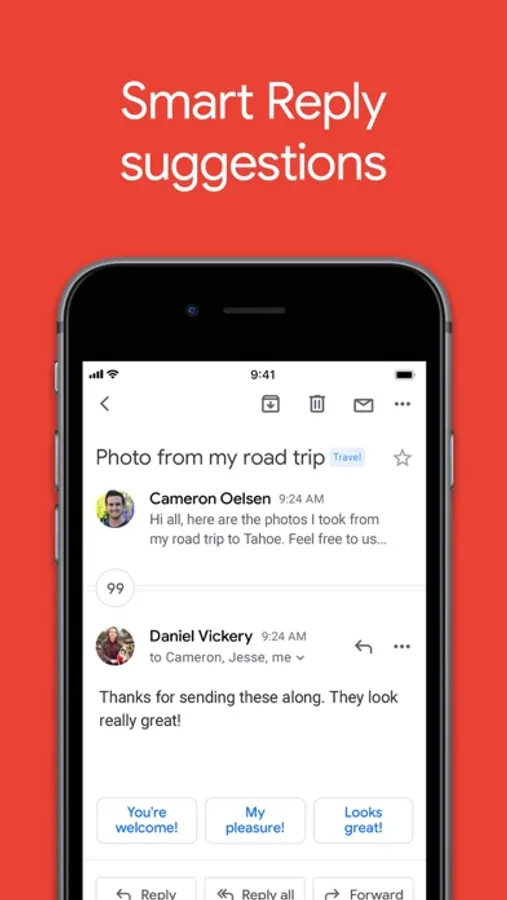 • Respond to emails quickly with Smart Reply suggestions