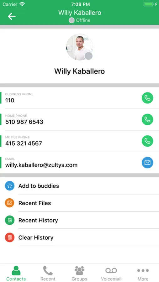• iPhone Mail integration to email contacts directly from Zultys Mobile