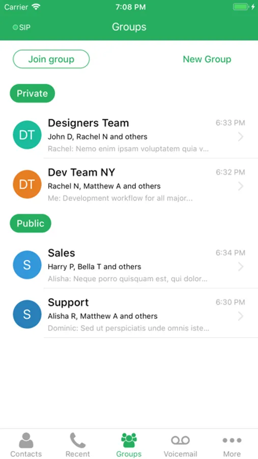 Zultys Mobile Communicator integrates mobile workers into the corporate Voice and Unified Communications IP phone system, providing critical functionalities such as real-time presence, real-time IM and secure chat, single number contact, incoming call and IM alerts, iPhone Mail integration that lets you email contacts right from Zultys Mobile Communicator, internal extension dialing and corporate directory access.Group Chat functionality is now available in Zultys Mobile Communicator.