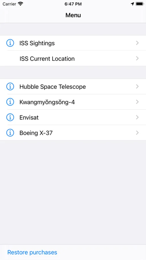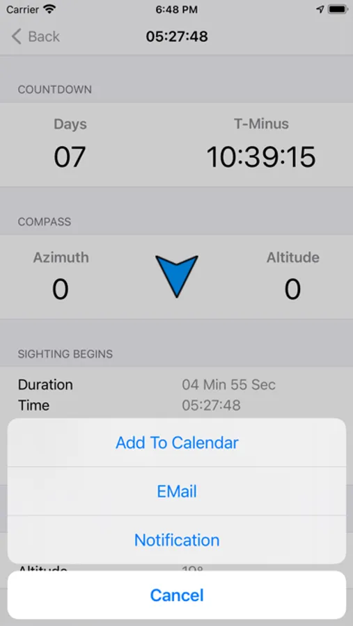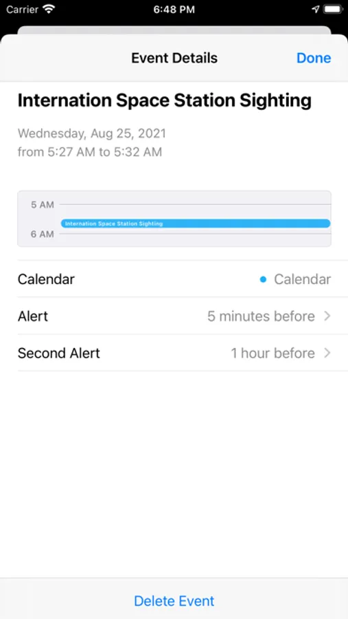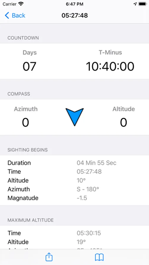 ISS Locator uses your current location to determine when the International Space Station or other satellites will pass over. The iPhone magnetometer is used to indicate which direction to look. The iphone gyroscope is used to indicate the altitude on the horizon where the ISS will appear. A countdown lets you know exactly when the sighting will begin as well as how long it will last. Sightings can added to the calendar or a notification can be set. An email describing the sighting can be sent to a friend.