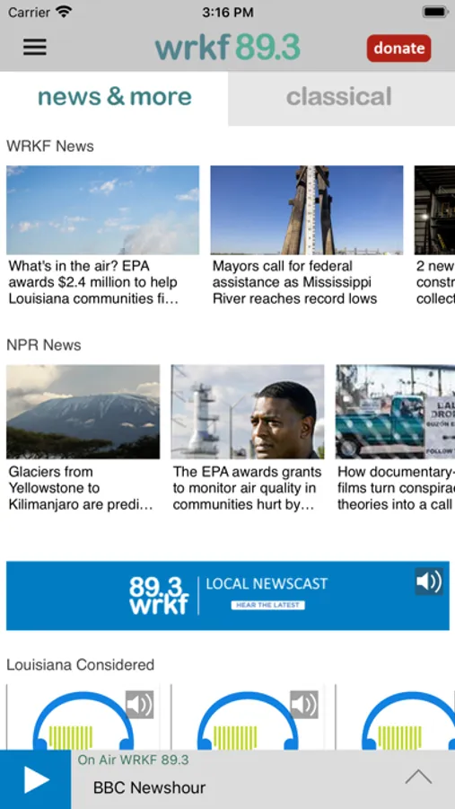 • Access public radio programs from multiple content providers (NPR, PRI, APM and WRKF) easily and quickly.