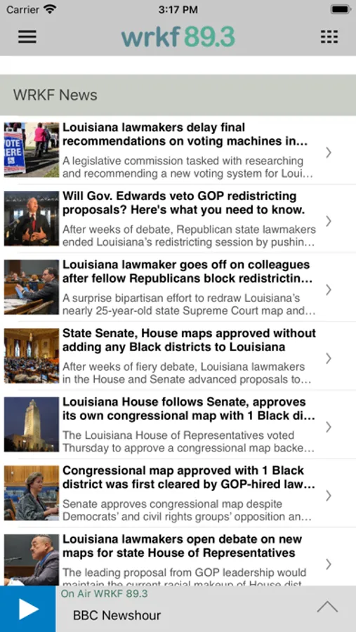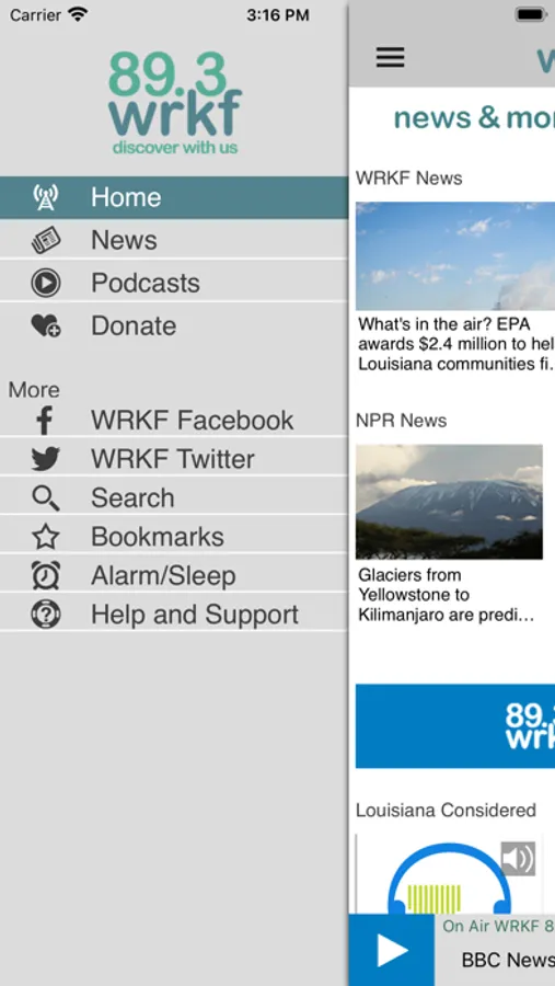The WRKF Public Radio App allows you to listen to WRKF live, pause and rewind the live audio, and view the WRKF program schedule all at once! You can explore On Demand content, search for stories, bookmark a story for later, and wake up to WRKF with the alarm clock!