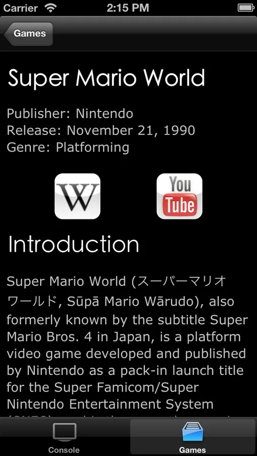 This App is a summary of the Super Nintendo Entertainment System console and games information.