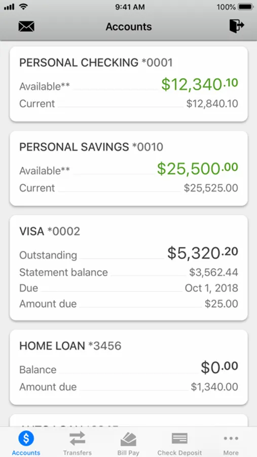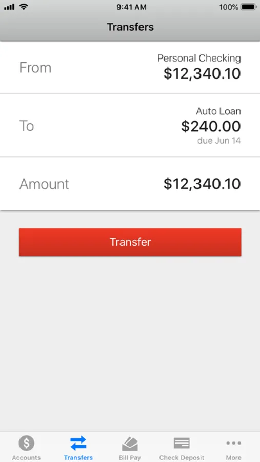 • Only transfers between existing accounts can be made—you cannot add a new account using the app.