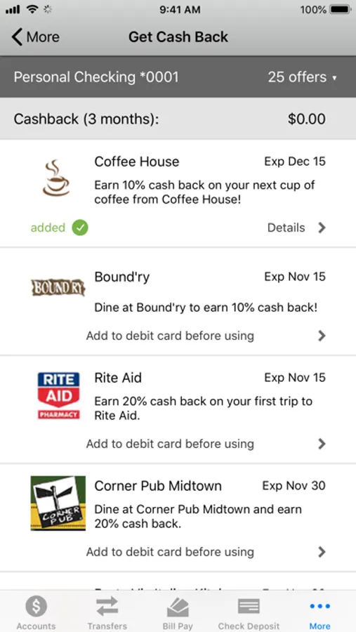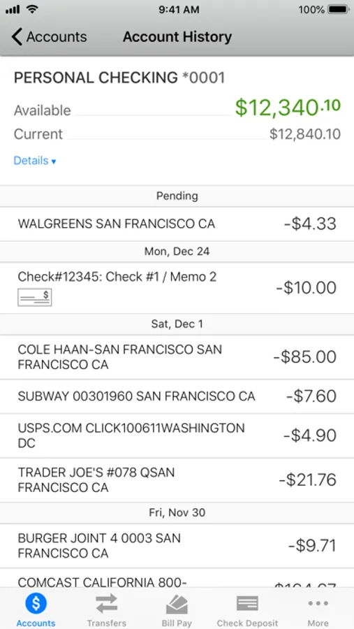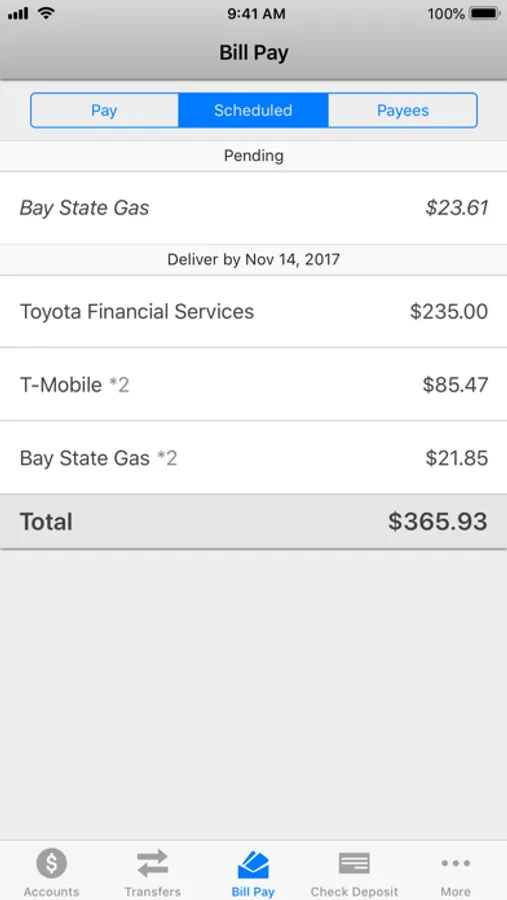 • Bill payments can only be made to existing billing accounts—you cannot add a new billing account using the app.