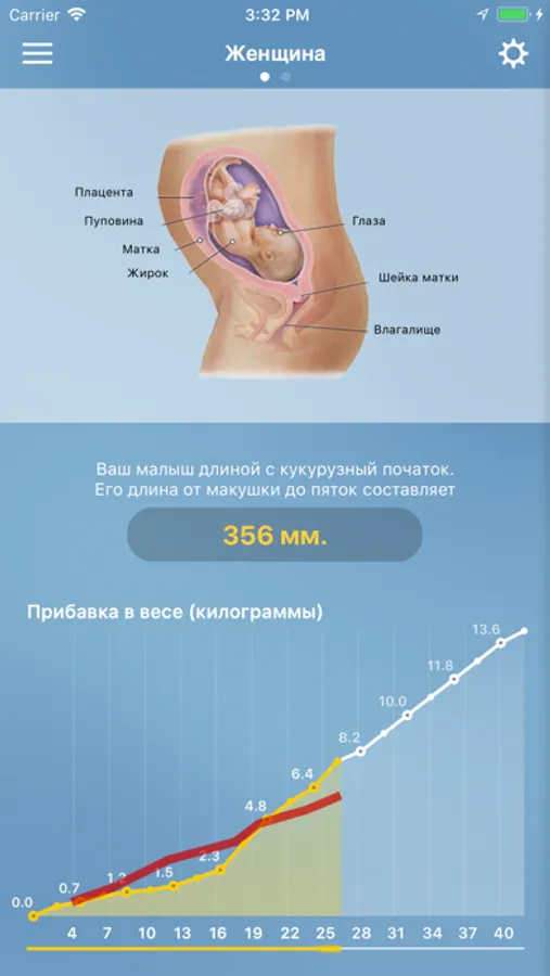 - Программа показывает диаграмму роста и веса малыша, развитие его органов и навыков, а также содержит полное описание его развития по неделям.
