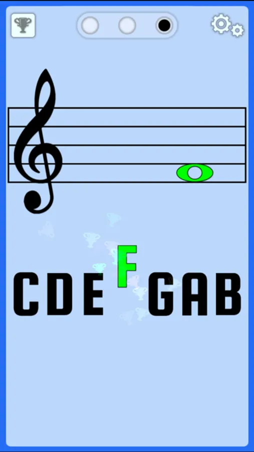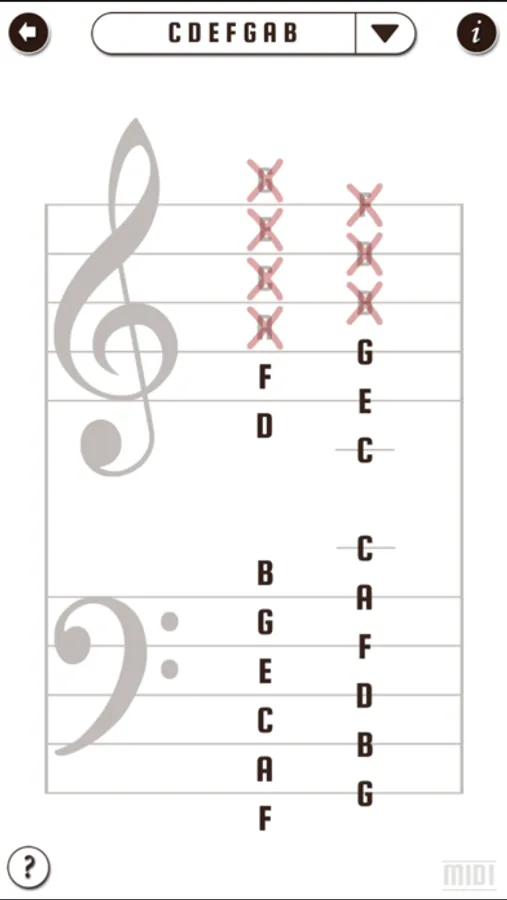 • Displays a random note on the musical staff and you tap the correct letter/key.