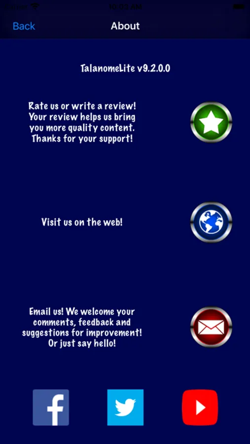 * "Make Your Own Talam/Choose Your Own Talam" lets you explore more exotic talas and beats from other genres by transcribing them easily with our Tala Editor. Importing and exporting talas are a breeze, and you can share easily via email.