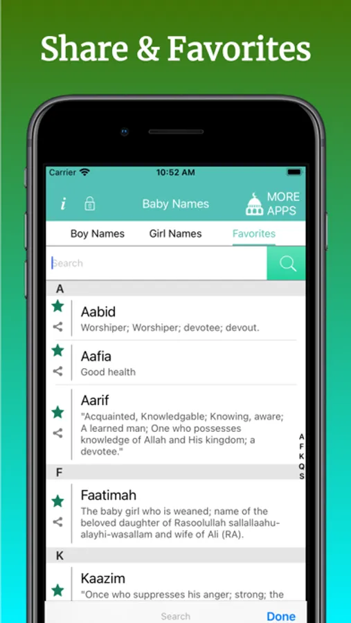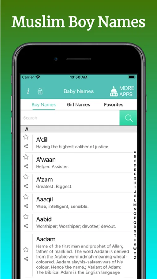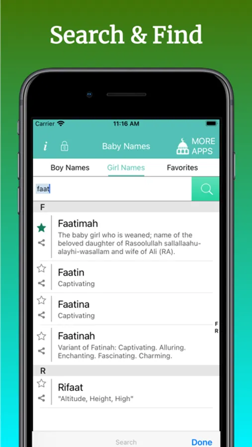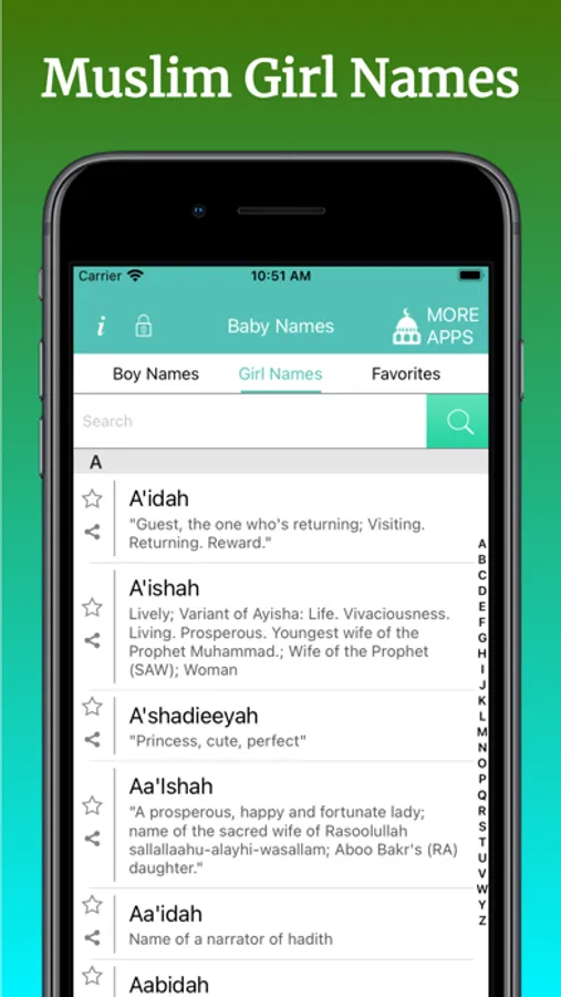 Muslim baby names - Islam is your one stop app for browsing hundreds and thousands of Islamic baby names with meaning on you're iPhone, iPad or iPod :)
