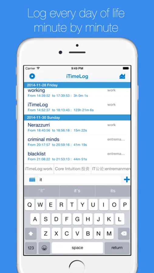 iTimeLog is a set of good-design function that allow you to log,track and review your time and life effortlessly.
