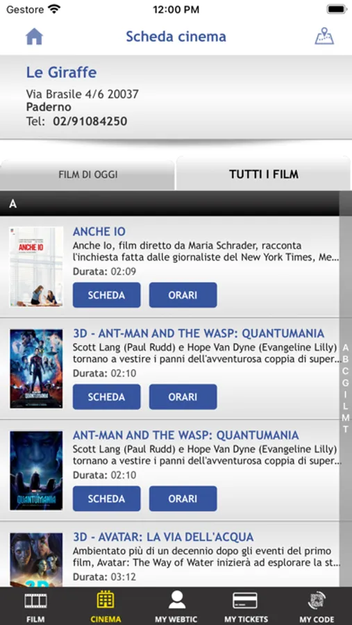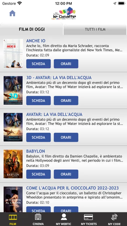 Applicazione per iPhone / iPad per la prenotazione e l’acquisto di biglietti nella Multisala di Paderno Dugnano Le Giraffe