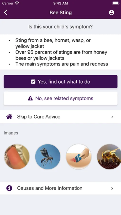 • Symptom Checker – for help deciding what to do when your child is sick or hurt