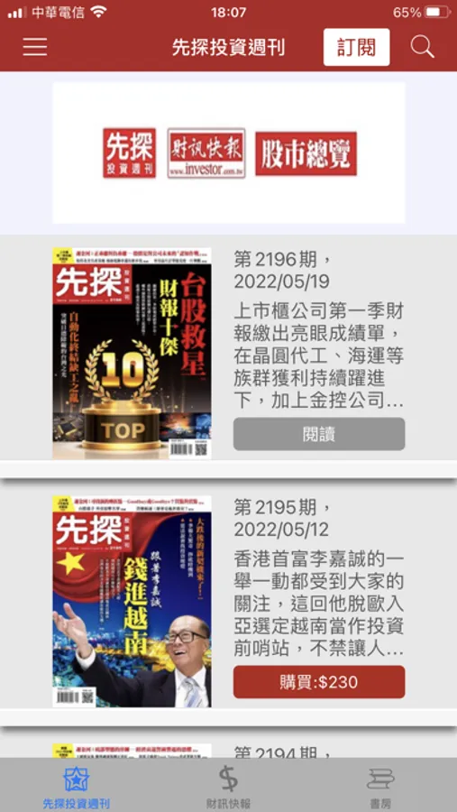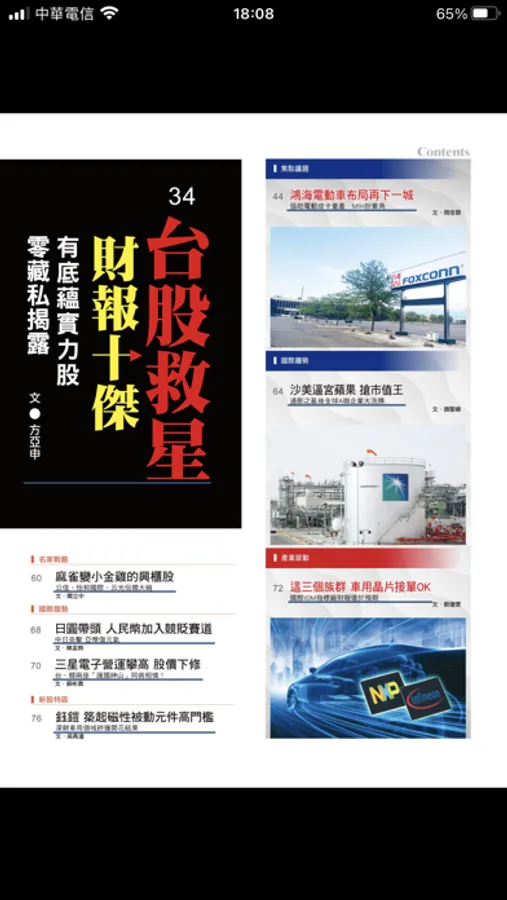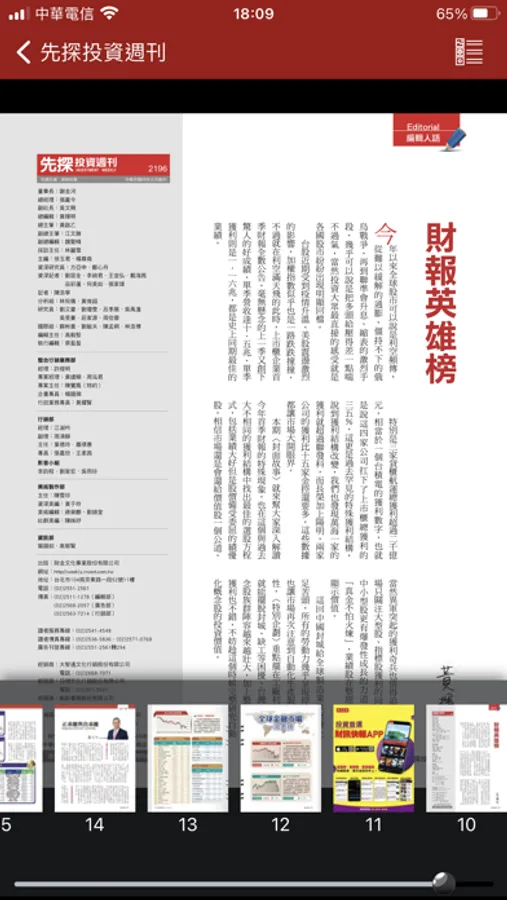 每周四出刊,不但完整提供一周投資訊息,同時準確預測未來的動態趨勢。秉持「看先探讓您在投資市場搶先賺」精神,成立逾三十年來,我們一直領先其它理財雜誌,透過最前瞻、最深度、最精準的財經趨勢分析,協助讀者掌握台股及各類投資工具的致富契機。不論市場起伏漲跌,週週都讓讀者「先看先賺」。