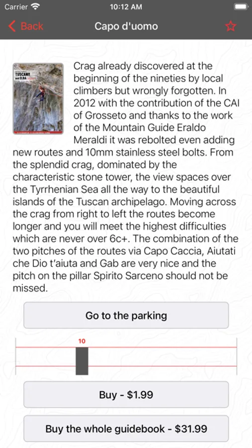 Every destination presents free basic information; to get the detailed information and topos you can purchase its extra content.