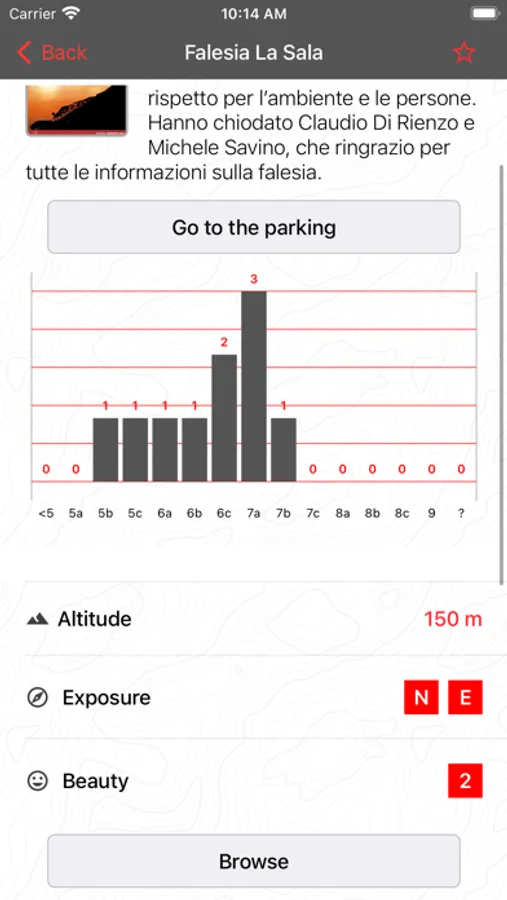 Please notice that in the free basic version the position of the crags and climbing spots is often approximate; the exact position is available only for purchased extra content.