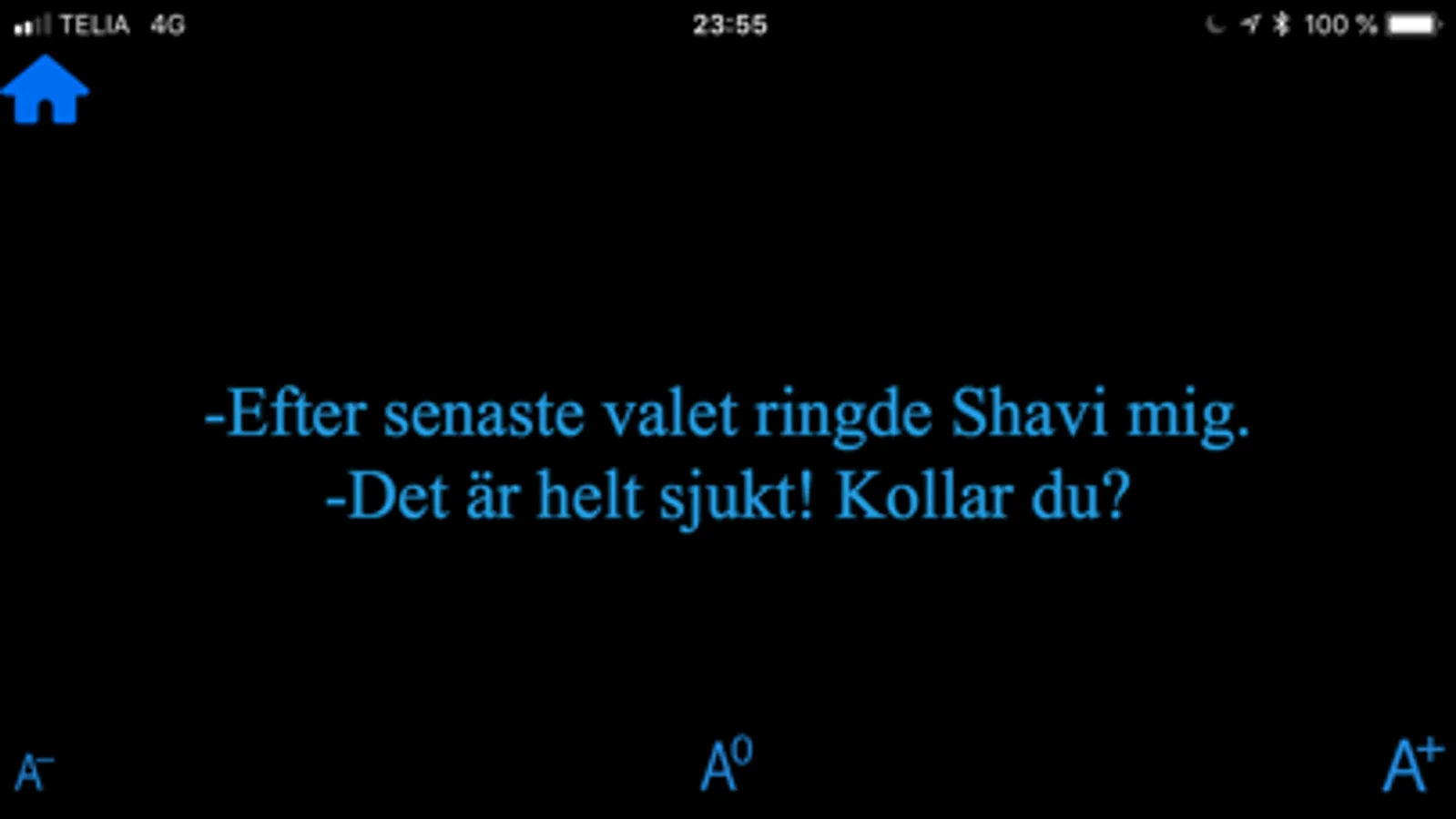 Used at live theater for closed captioning by Riksteatern. The user can choose one of the languages offered.