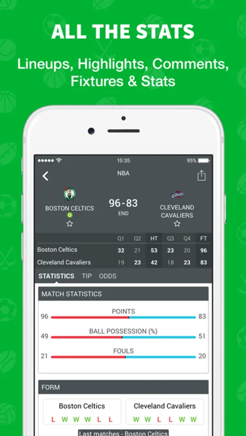“Live Football, Tennis and Basketball Scores” is the FASTEST and most COMPREHENSIVE application for following the SPORTS you LOVE! Receive notifications of your favourite teams’ goals and results! Anywhere and at any time!
