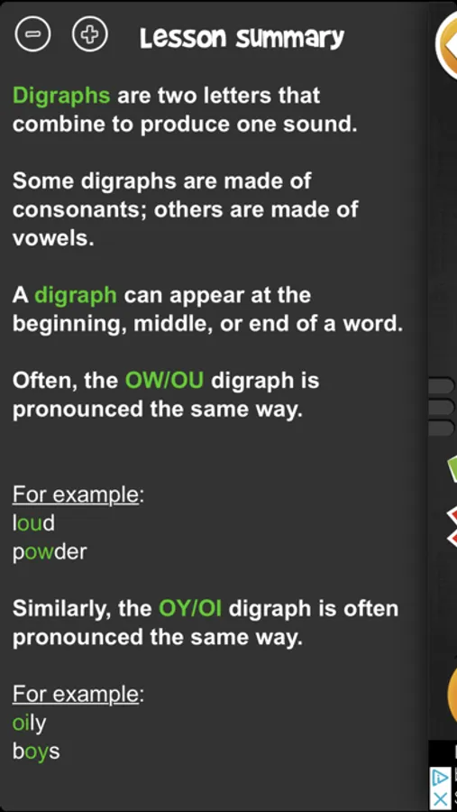 ‣ 3 themes: Grammar, Verbs, Vocabulary and Spelling