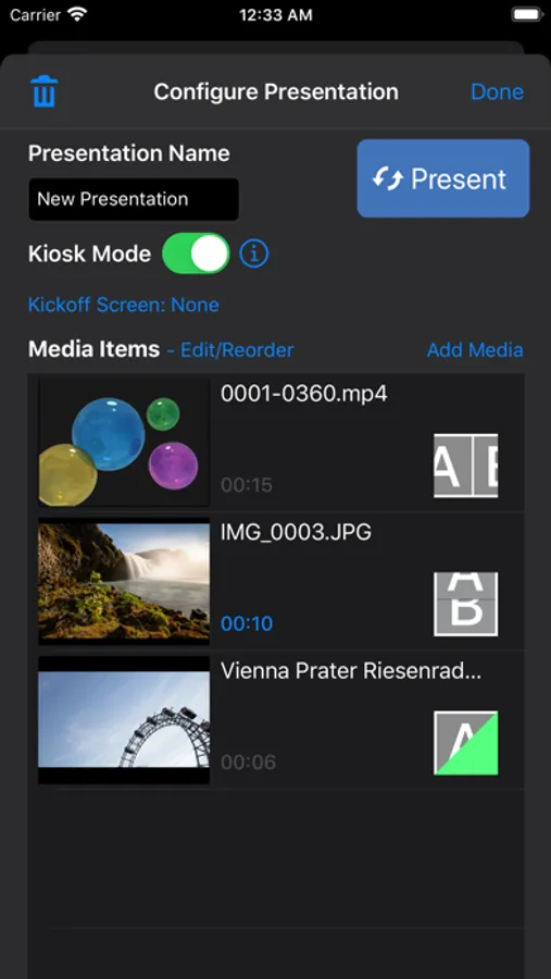 In addition to looping video, you can add images and PDFS. You can also customize the background image of the application to match your company's brand.