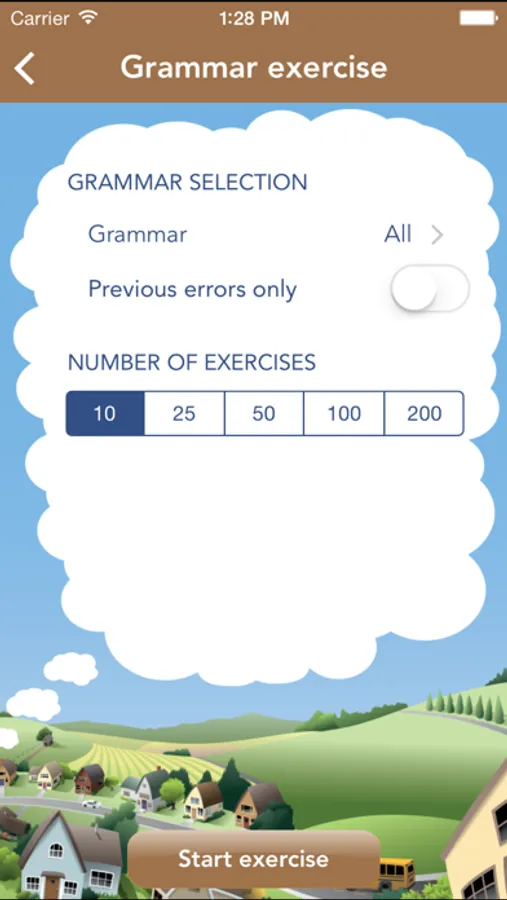 * Highly customizable exercises on all of the above, with a fun awards system that is integrated with Game Center which makes practicing fun, with separate awards for the vocab, verbs, grammar and listening exercises.