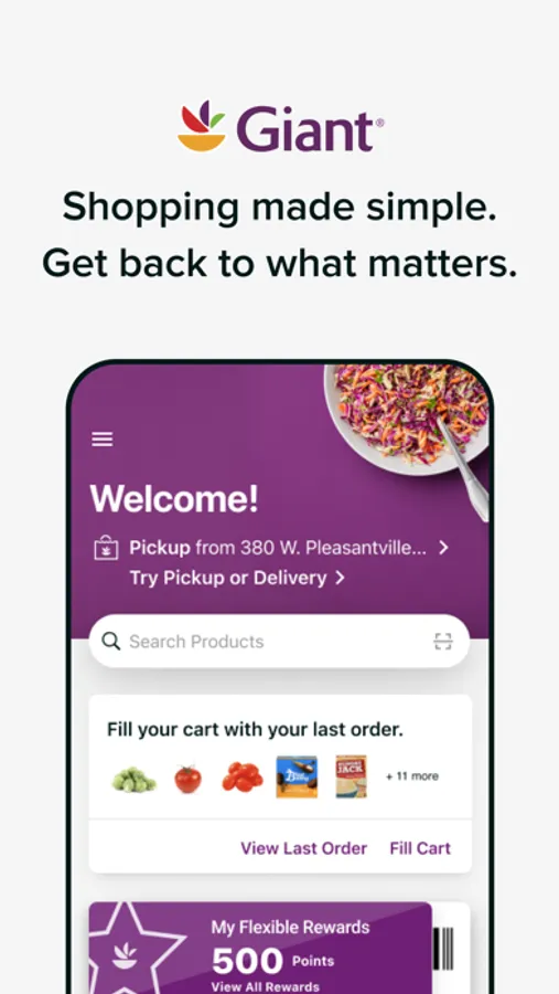 The Giant Food online and in-store shopping you love, now even better: easier-to-redeem Flexible Rewards Points and Bonus Buy Savings, a dedicated "Shop" section and simpler navigation.