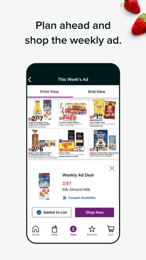 • Save it all to your account and automatically redeem in-store or online, when you checkout with your Giant Food card.