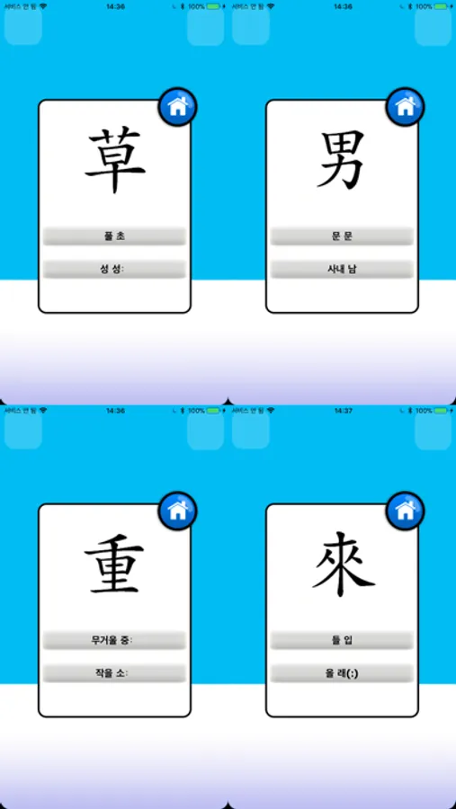 1. 100% 그림 한자 낱말카드 기능(플래쉬 카드)