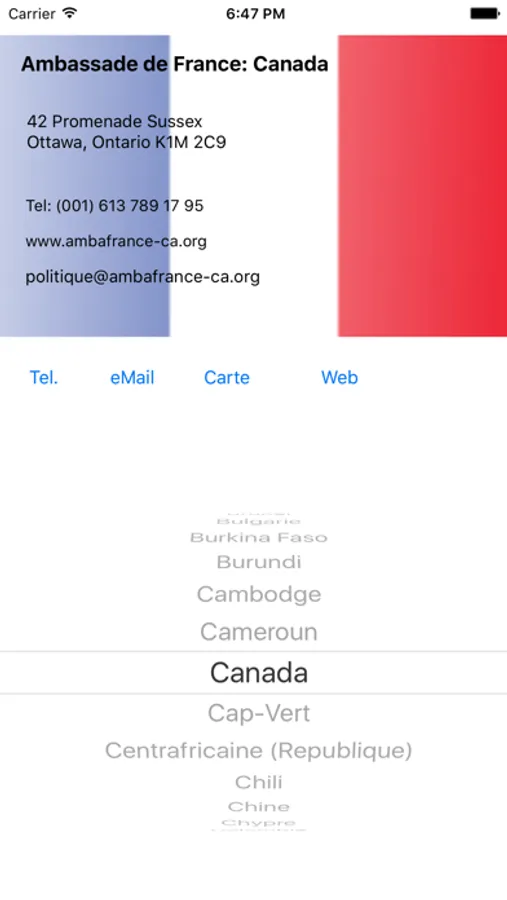 "Ambassades" contains the contact information of all embassies of France in the world.