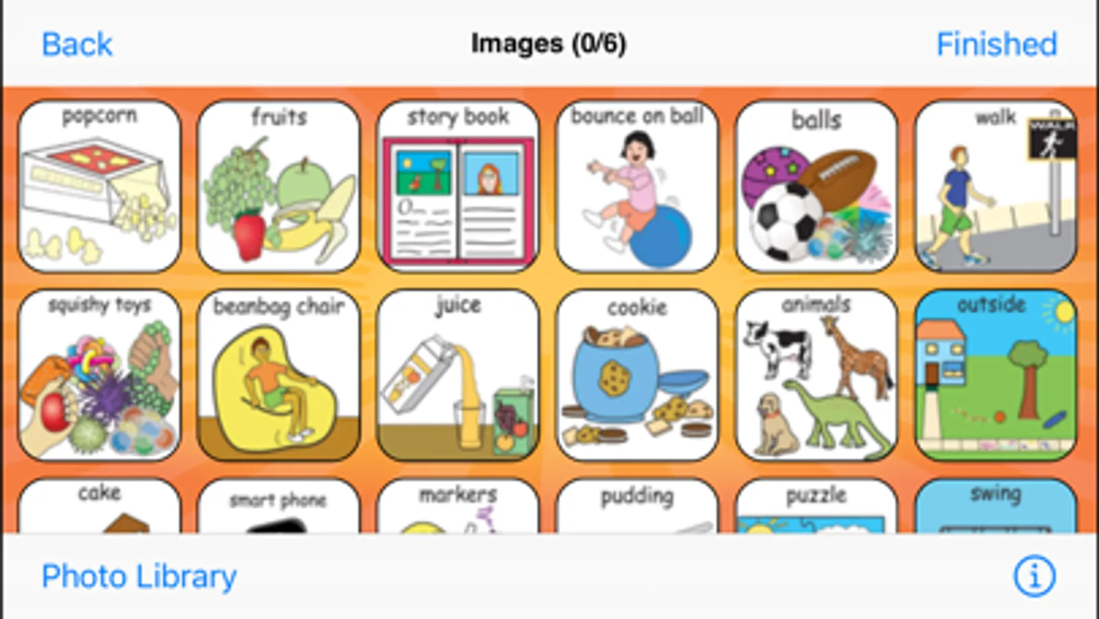 •Customize student choice board to include up to 6 images selected from preloaded images or images in your photo library
