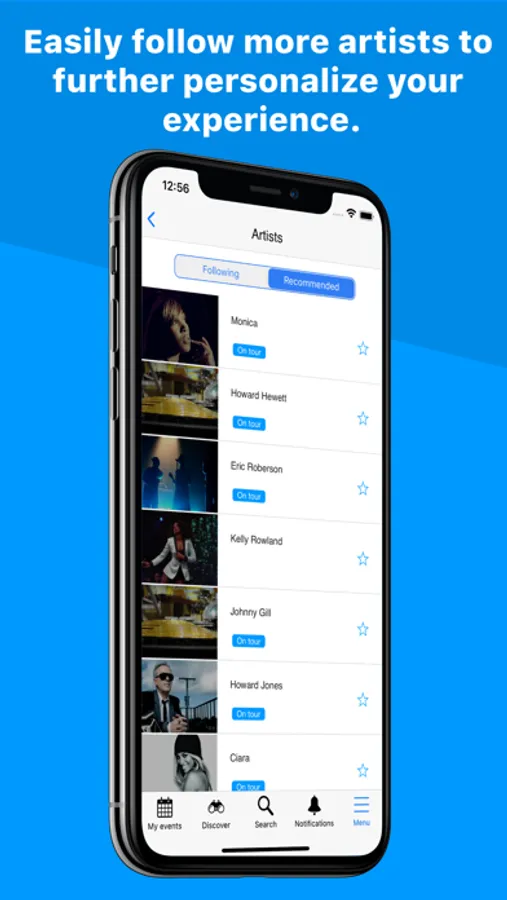 * Choose to receive push notifications for newly announced events from your favorite artists