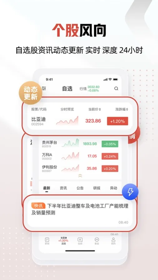 第一时间对各类信息进行监控、判断、整理、推送,7*24小时追踪全球金融动态、政策风向,股票证券快讯重大情报,投资机会一览无余。