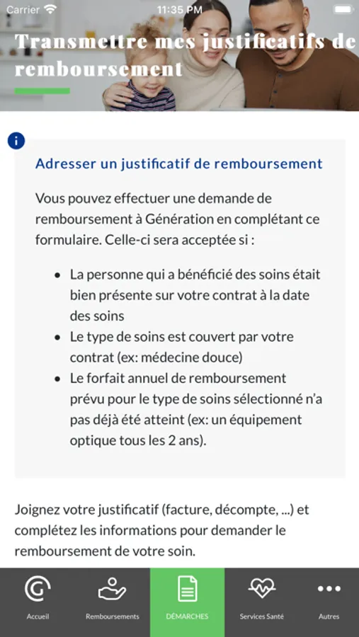 Génération vous propose une application fluide et simple afin de vous faciliter la gestion du contrat de frais de santé.