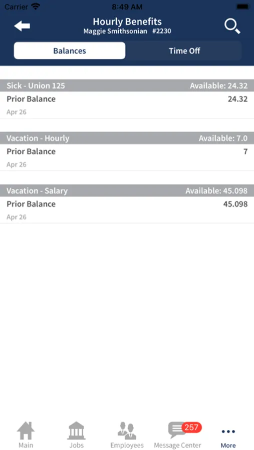 • Manage personal information: View pay stubs, W-2s, hourly benefit balances (PTO/sick); update contact information; clock in and out of jobs.