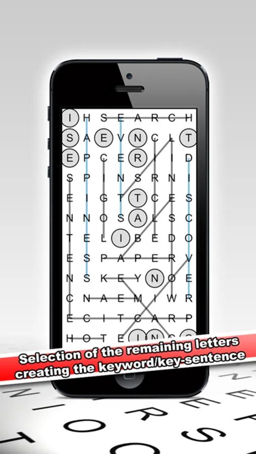• Selection of the remaining letters in the puzzle by drawing circles, creating the keyword/key-sentence.