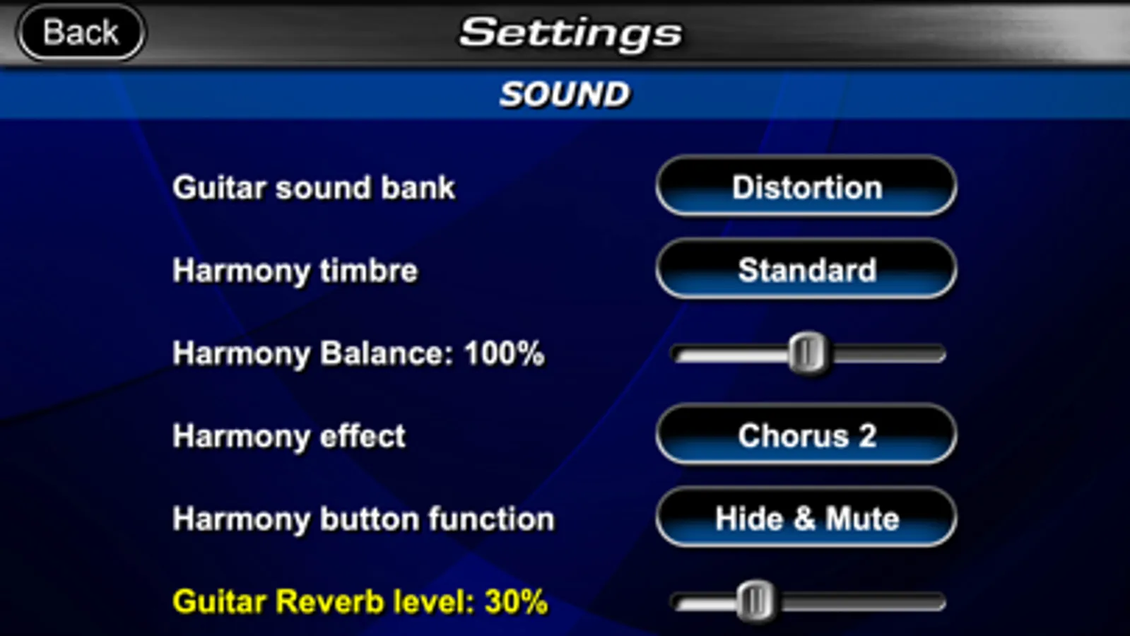 ● Two guitar sound banks (Acoustic and Distortion) to select