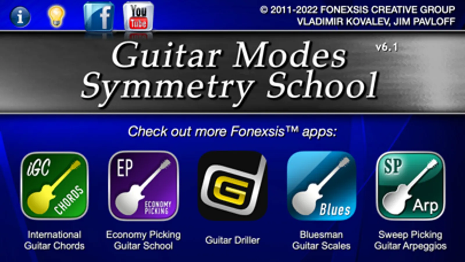 This is an unique collection of guitar modes that gives you an excellent original material for improvisations! "Guitar Modes Symmetry School" is a triple horizontal system, in which modes are played with 3-notes-per-string approach. Unlike the "vertical-traditional" fingering, this school presents "horizontal-extended" fingering, that helps to perform modes in 2-3 octaves bound. Such artists as Shawn Lane, Frank Gambale, John McLaughlin, Allan Holdsworth, Guthrie Govan, Paul Gilbert, Steve Vai, Richie Kotzen, Joe Satriani and others used to practice extended fingering in their songs. This school will help you to take possession top technique, i.e. you will be able to more quickly achieve technique perfection. Material inside this app represents our several years experience, and we hope it will give you some pleasure!