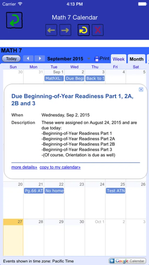 Students at our school can use the app to also check their homework, grades, on-line textbook , school site and their Moodle-powered Mathtrain.com class site.