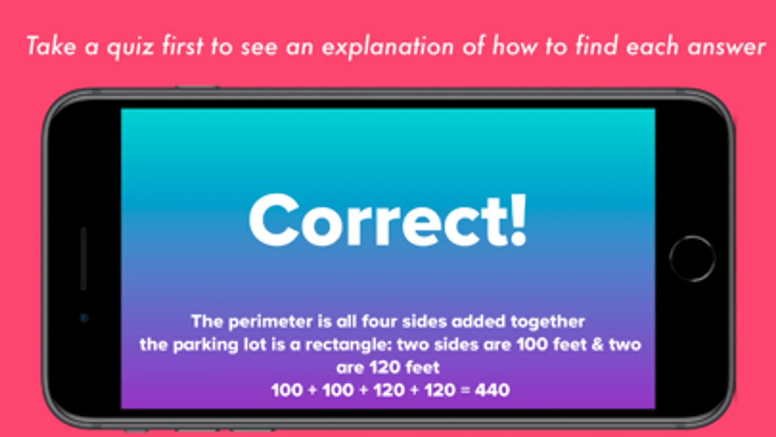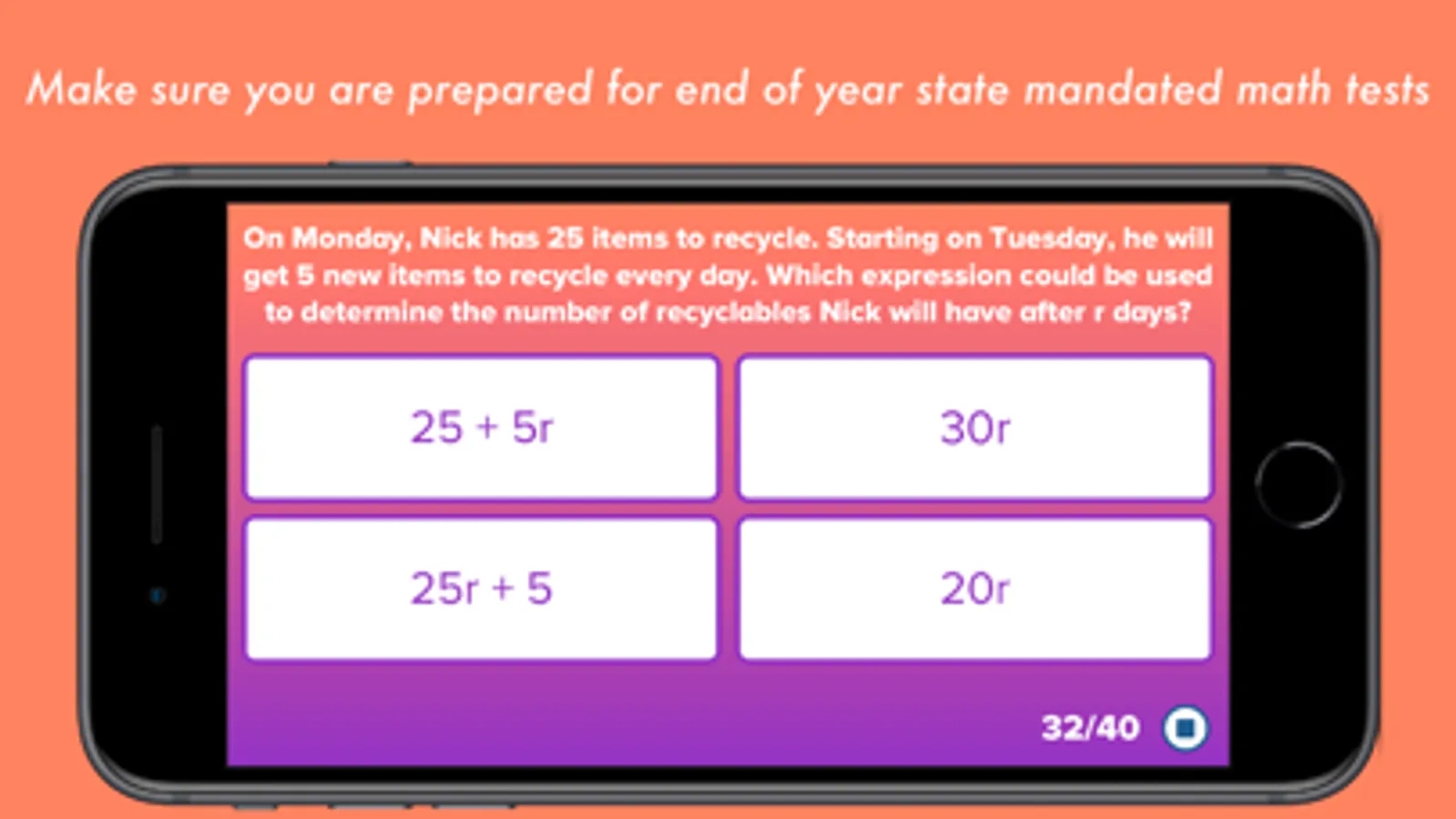 This app helps to assess if you're ready for the end of 5th grade tests. You will see an explanation of how to find the right answer when you get a question wrong, but there is no other teaching in the app. It's practice for your test!