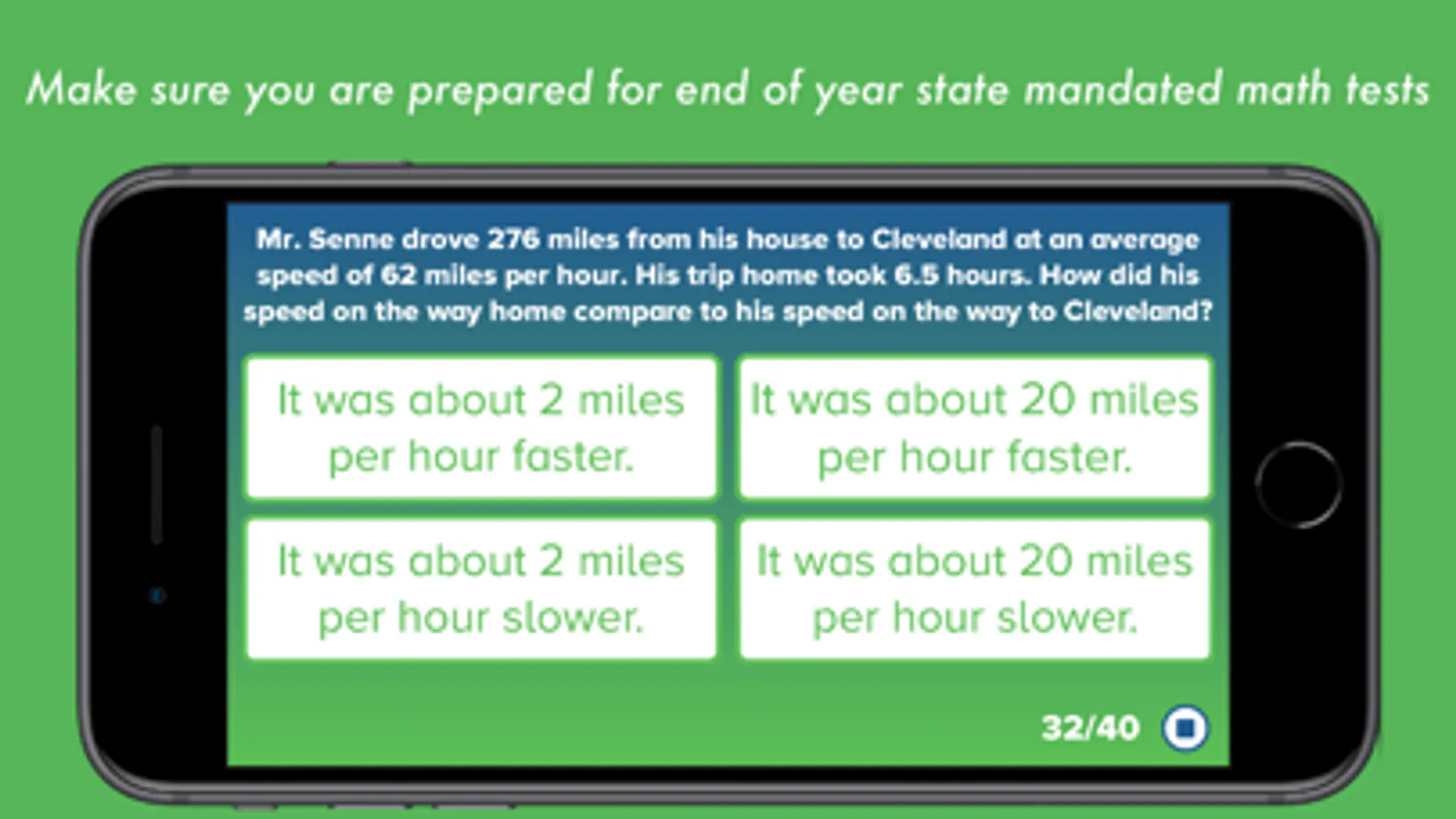 This app helps to assess if you're ready for the end of 7th grade tests. You will see an explanation of how to find the right answer when you get a question wrong, but there is no other teaching in the app. It's practice for your test!