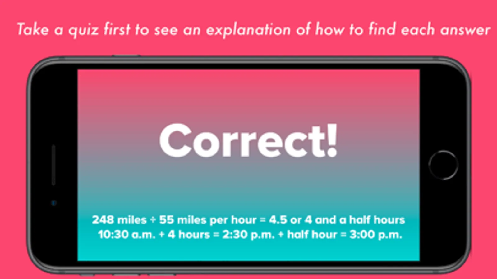 This app helps to assess if you're ready for the end of 8th grade tests. You will see an explanation of how to find the right answer when you get a question wrong, but there is no other teaching in the app. It's practice for your test!