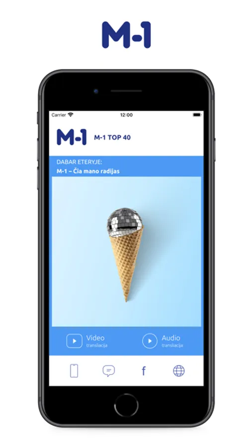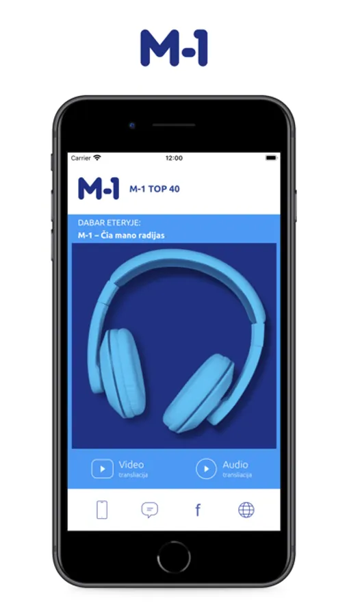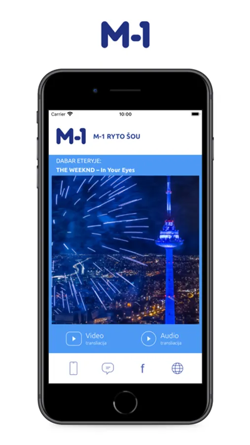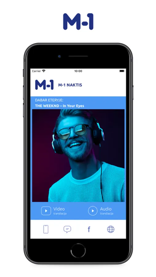 Parsisiųsk M-1 aplikaciją, klausykis, žiūrėk vaizdo transliaciją ar skambink į studiją tik 1 mygtuko paspaudimu.
