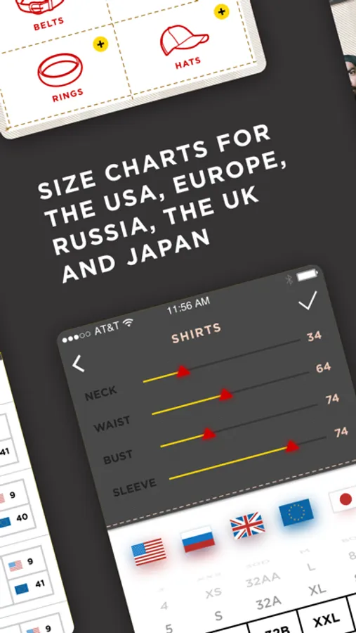 Sizer application can help you to choose the right size of clothes in the U.S., Europe, the U.K., Japan or Russia. All you need to know is one of the sizes — the application will tell the rest. Making a shopping trip to another country, online purchasing and an unexpected gift to your beloved will be easier when you can convert sizes on the go.