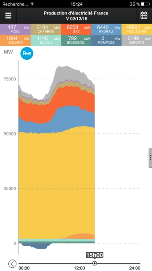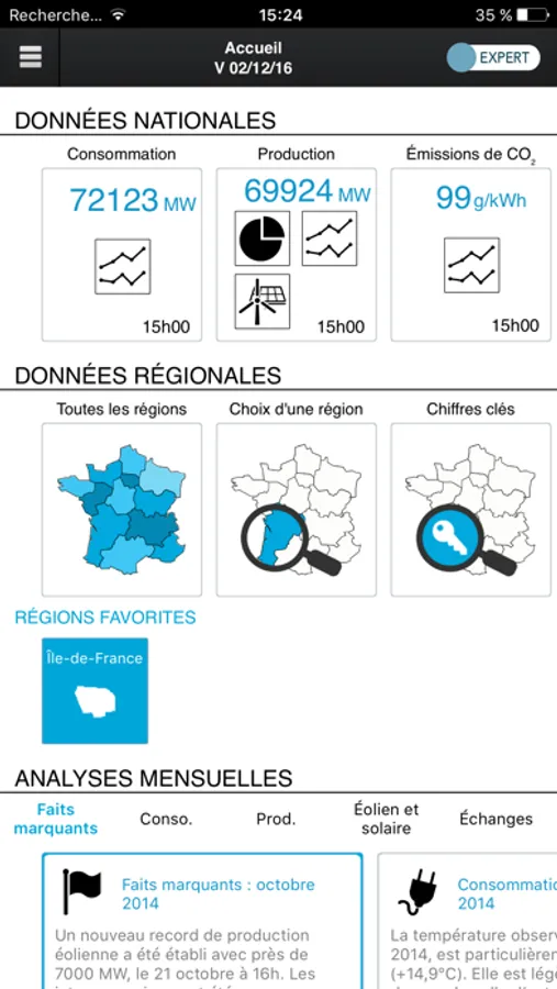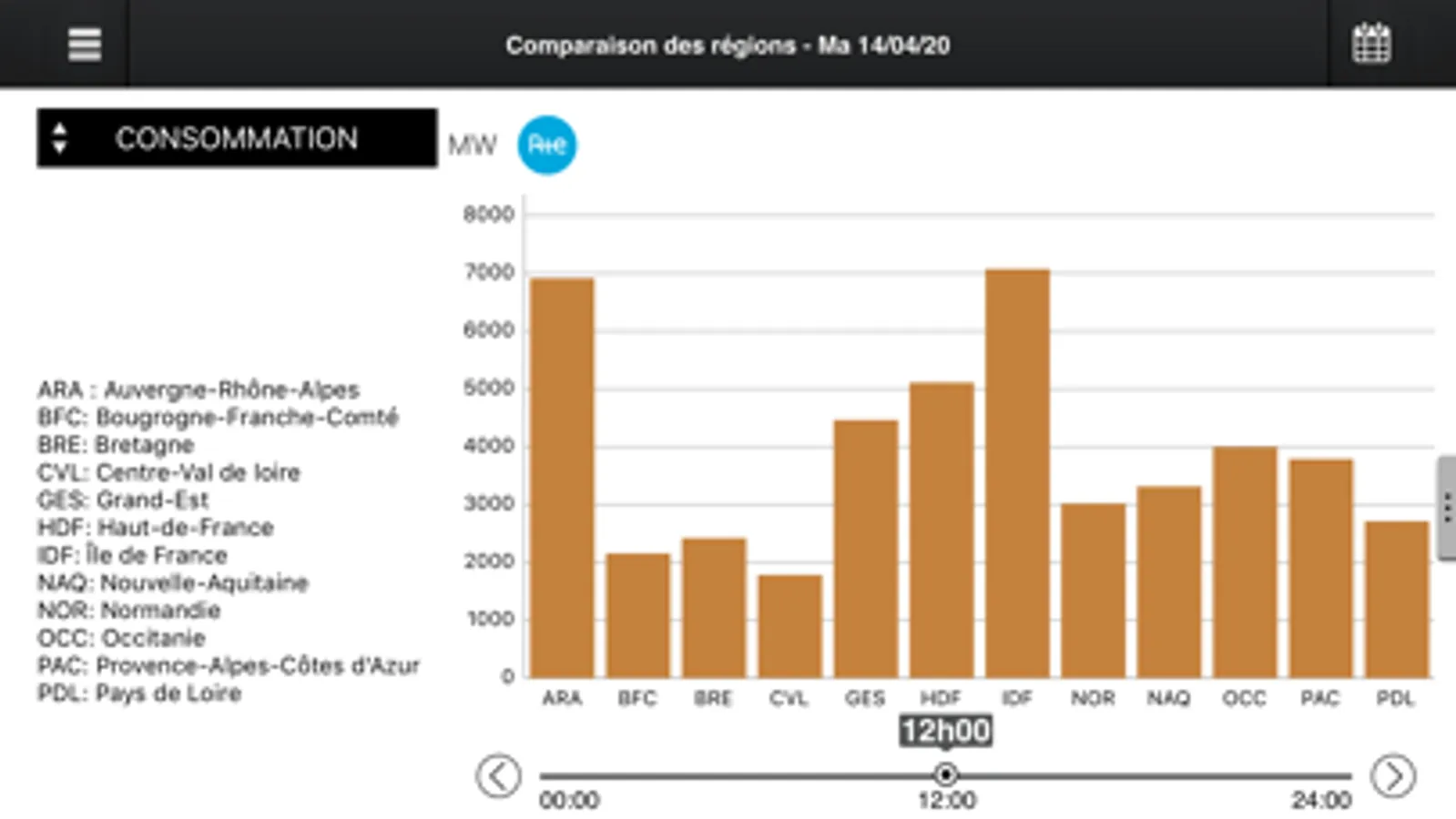 - suivre, heure par heure, les données régionales et nationales du système électrique (consommation et production d’électricité, émissions de CO2 en France liées à cette production, échanges aux frontières, prix spot),