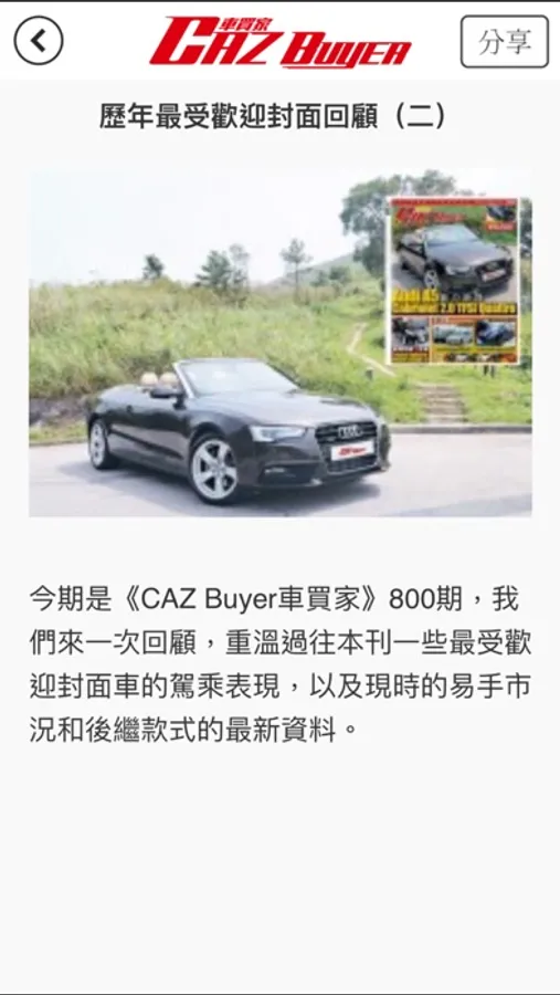 《CAZ Buyer 車買家》是本地第一個提供二手車盤、配件及車牌交易平台的iPhone App,更提供廣泛的二手車市場資訊,內容包括新車測試、汽車及配件的功能簡介,為讀者提供有效的二手車交易平台。