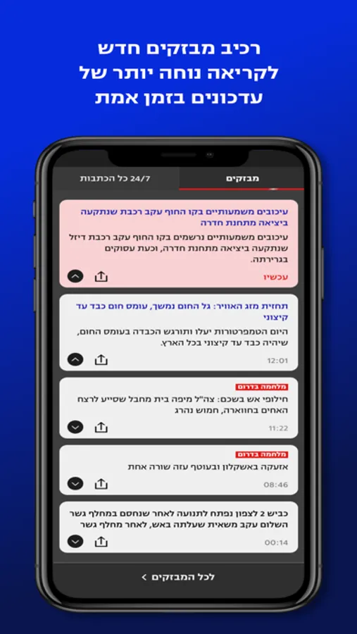 הישארו מעודכנים בכל מה שקורה ותוכלו גם אתם לדון, להגיב, להשיב לאחרים ולהיות בכל רגע ורגע חזק בעניינים.