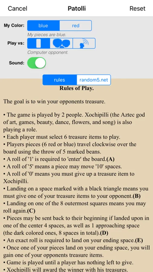 Patolli is one of the oldest games in the Americas, reportedly having been played by both the ancient Aztecs and the Mayans. Montezuma himself has been said to have played it. At the time of the Spanish Conquest, it was outlawed. The design is said to have close ties to ancient calendars as well has have religious meaning.